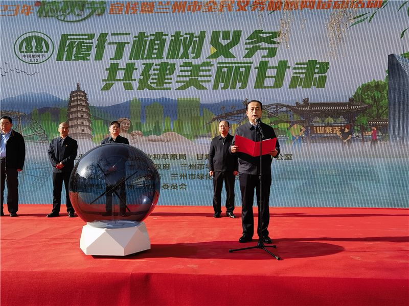 成少平在致辞中指出,近年来,在省林业和草原局的精心指导和兰州市委市政府的正确领导下,兰州市认真践行绿水青山就是金山银山的理念,全力推进林草生态修复,着力加强绿色资源保护,积极发展绿色富民产业,系统推进林业草原和城市园林绿化实现高质量发展,国土绿化取得了显著成效。今天“3·12植树节”暨“兰州全民义务植树网”正式启动,必将进一步拓宽全市人民义务植树尽责渠道,丰富义务植树尽责形式,不断提高全市义务植树尽责率。