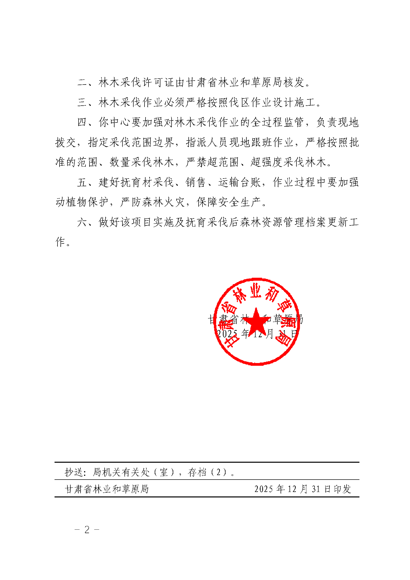 关于迭部生态建设管护中心2024年度森林可持续经营试点示范林建设采伐林木的批复