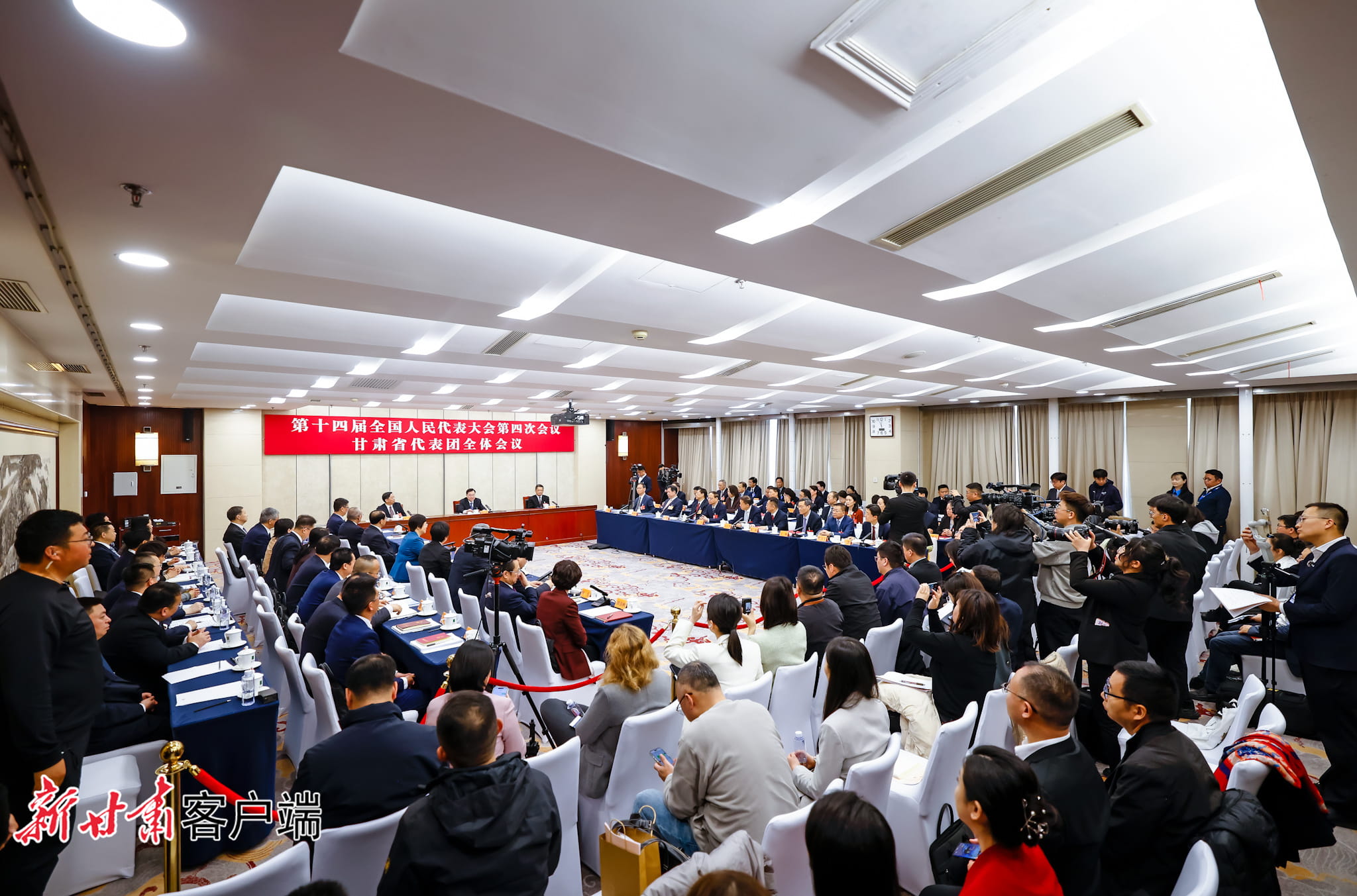 上午9时,来自人民日报、新华社、中央广播电视总台、光明日报、经济日报、中国日报、中新社等中央媒体,凤凰卫视、香港商报等香港媒体,意大利晚邮报、非洲时报等境外媒体,以及甘肃日报、甘肃省广电总台等省属媒体的记者,带着对新时代甘肃高质量发展的关心关注进入会场,近距离记录和报道代表们审查计划报告和草案、预算报告和草案时的发言。
