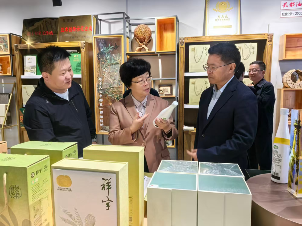 在武都区桔柑镇贺家坪油橄榄示范基地,王旭仔细了解油橄榄基地建设、品种选育、种植技术、鲜果采摘和收购价格等情况。在陇南市祥宇油橄榄开发有限责任公司,王旭与企业负责人进行了深入交流,对企业发展、联农带农,油橄榄从种植到精深加工、副产品利用等全产业链进行了详细调研。在武都区天泽农林产品研发有限公司,王旭参观了中国花椒产业博览馆、产地质量监管仓,详细了解精深加工、产品开发、品牌建设等情况。