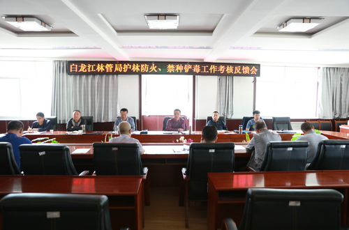 9月7日上午,在迭部林业局四楼会议室召开白龙江林管局护林防火、禁种铲毒工作考核反馈会。,会议由龚文鹏主持,迭部林业局领导孙治明、王国鼎、张鹏、王建国,防火办、天保办负责人参加会议。