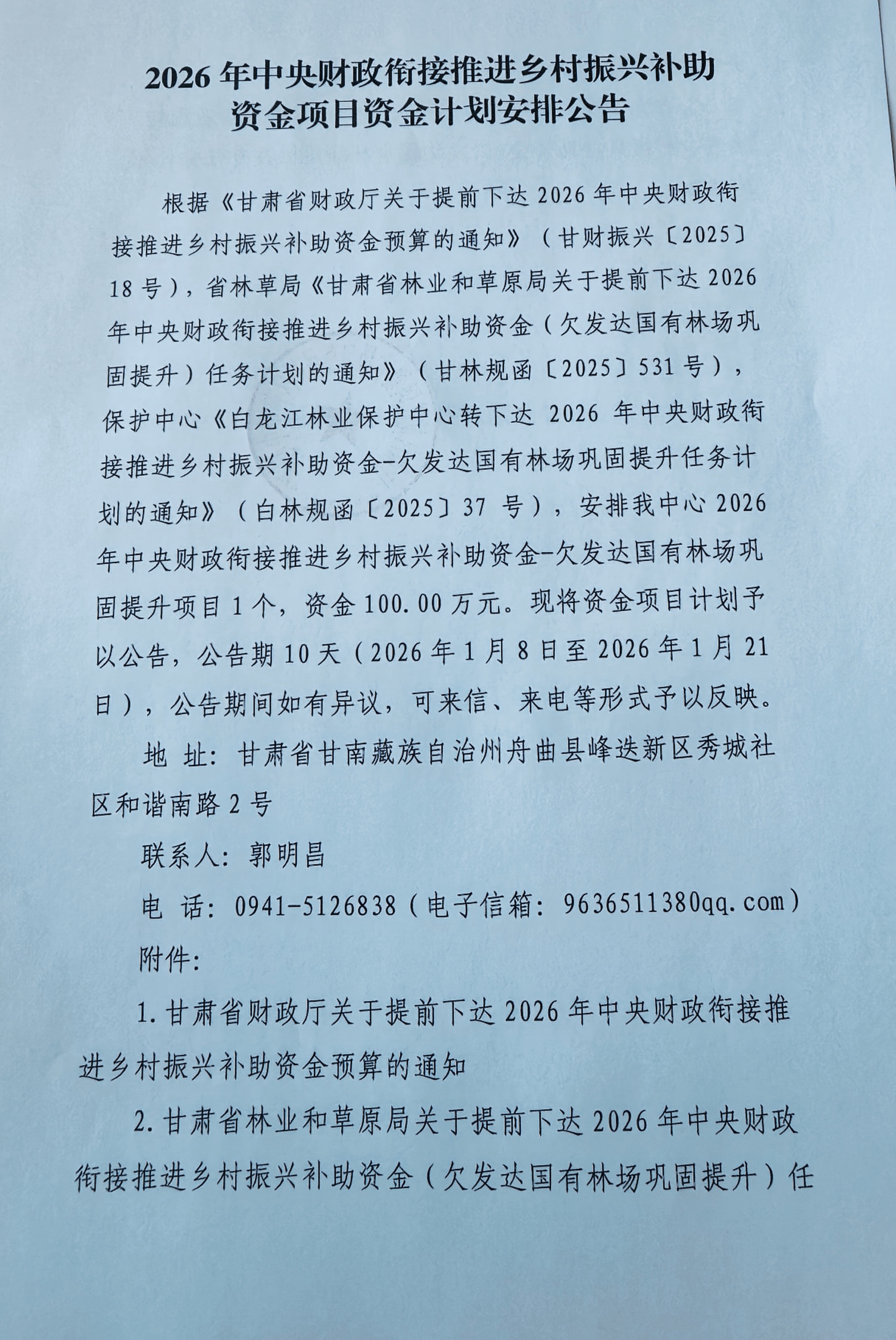 2.甘肃省林业和草原局关于提前下达2026年中央财政衔接推进乡村振兴补助资金(欠发达国有林草巩固提升)任务计划的通知.pdf 3.关于提前下达2026年中央财政衔接推进乡村振兴补助资金预算的通知(甘财振兴【2025】18号).pdf