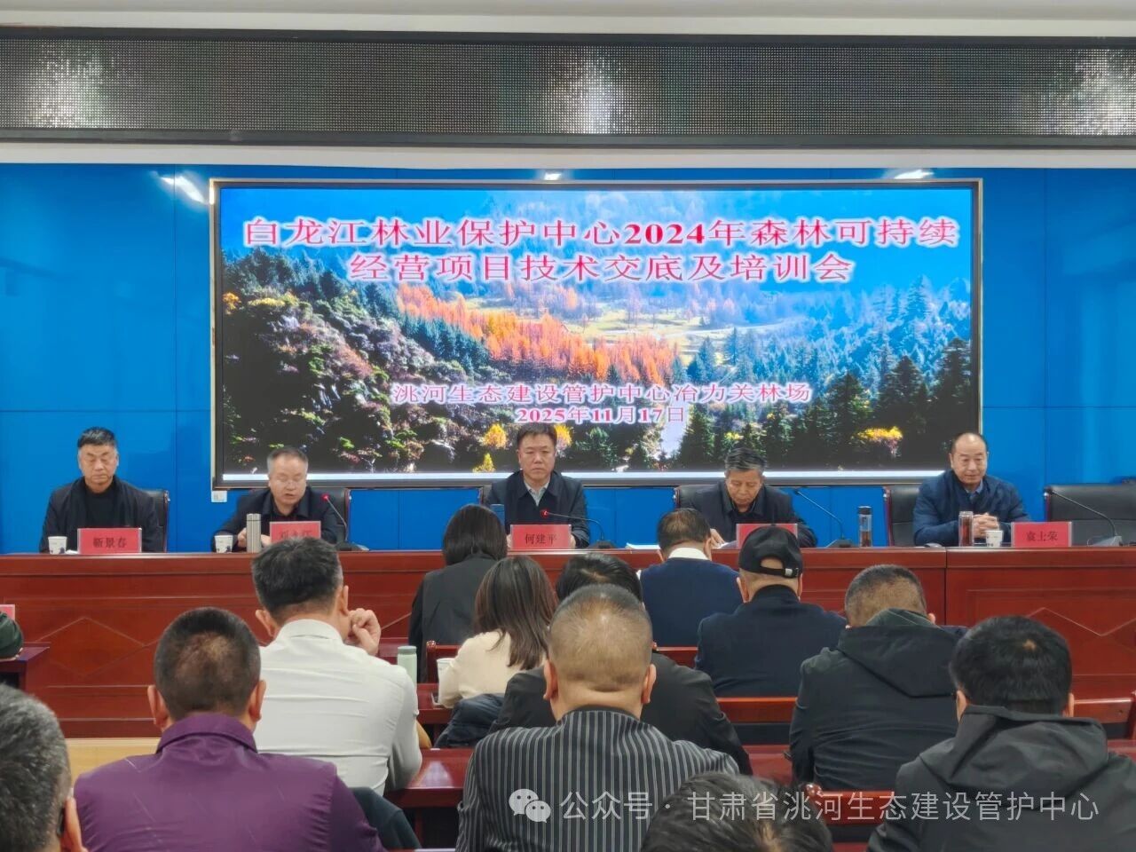 11月17日至18日,白龙江林业保护中心在洮河生态建设管护中心举办2024年森林可持续经营项目技术交底及培训会。保护中心党委常委、副主任何建平,造林处、资源处、林科所、规划院主要负责人出席会议,洮河、迭部管护中心有关领导参加。